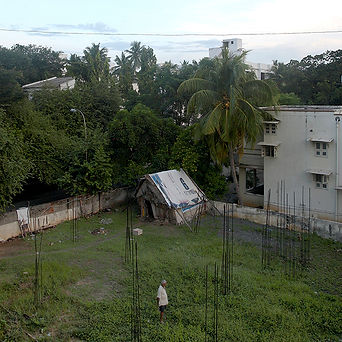 C'est ici et ce n'est pas ailleurs, le cadrage ne bouge pas et attire notre regard vers le détail. Nous sommes dans le quartier Kilpauk de Chennai en Inde mais si ce pays de contrastes a bien son importance, il n'y a pas de tentation au pittoresque ou à l'extraordinaire. Le photographe a posé son appareil et s'est minutieusement attaché à considérer l'évolution du temps. L'enchaînement des plans fixes qu'il a choisi de présenter sous la forme d'un film fait se dérouler devant nos yeux le rythme d'un quotidien. Les ombres glissent, les feuillages bougent et la lumière joue de ses simples effets pour redessiner sans bruit ni cesse un paysage dans lequel évolue un Homme.